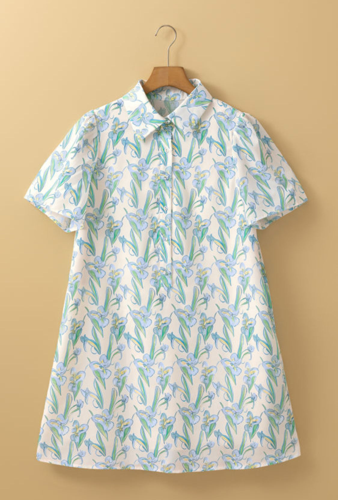 Stylish shift dress with a flattering shirt collar for a chic look.