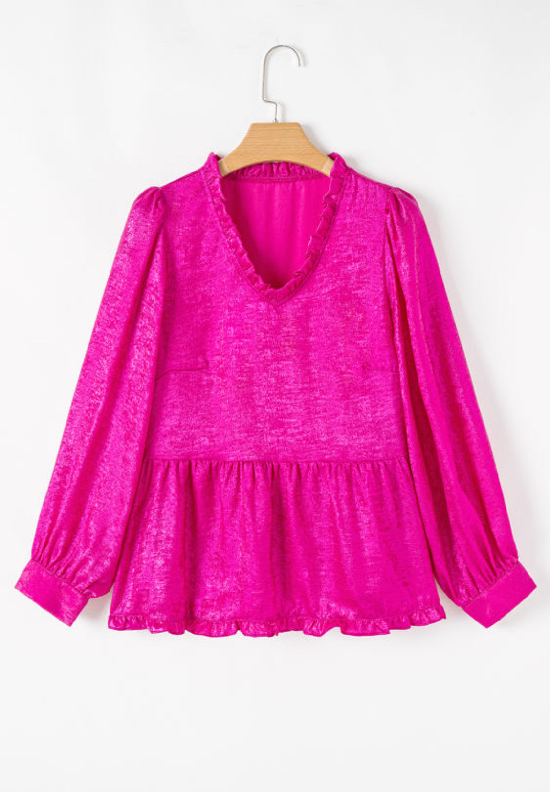 - Elegant frilled V neckline adds a touch of femininity.